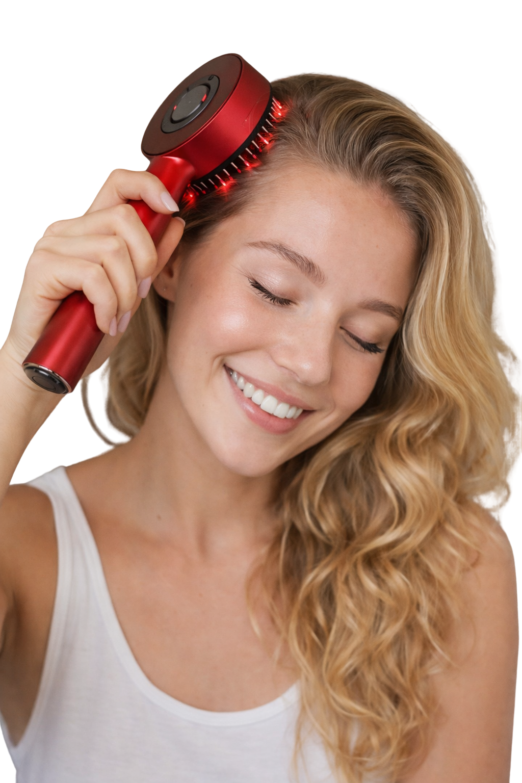 • 72 dientes redondos + luz roja de 630 nm: masajea y amasa el cuero cabelludo, nutre las raíces del cabello y acompaña una rutina de cuidado más completa.